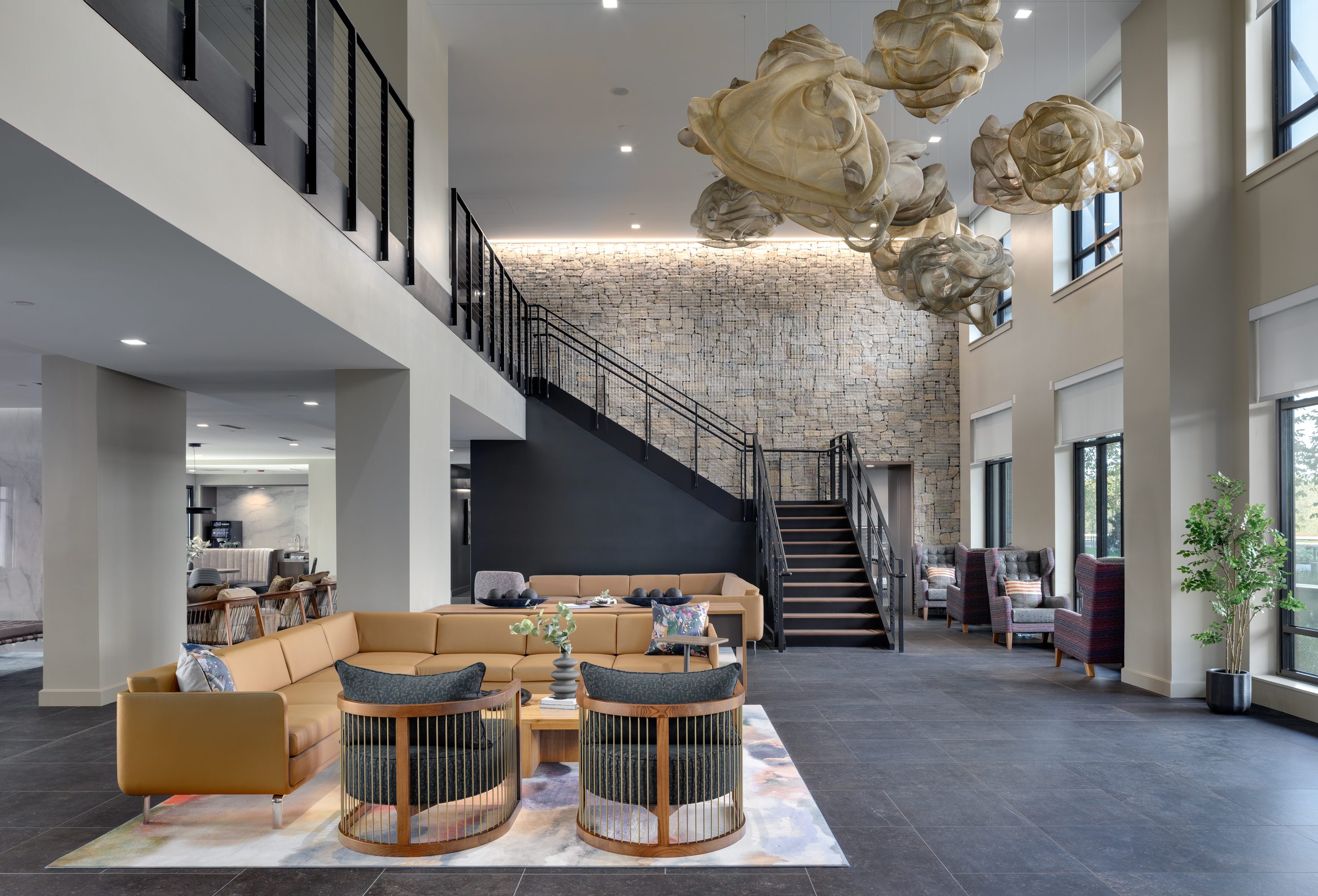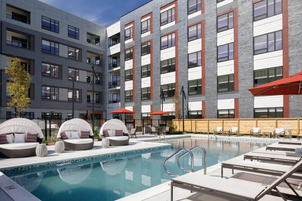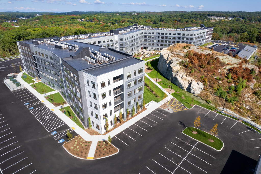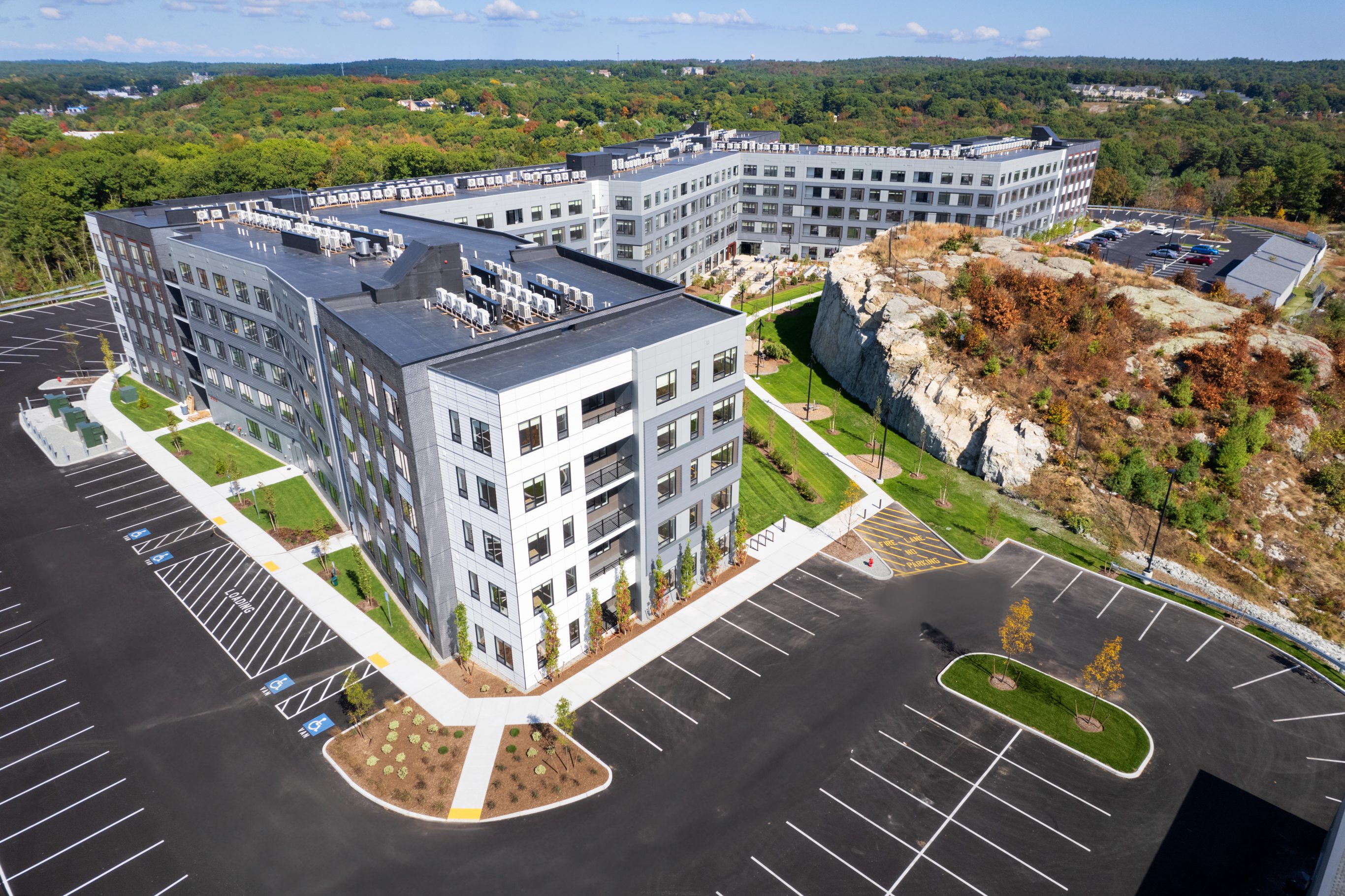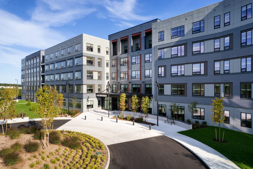 The Atwood project is a 300-unit multifamily residential building totaling 320,000 SF over 5 stories. The building is wood frame construction, with a post-tensioned concrete core, and includes 300 units comprised of studio, 1-3-bedorom units. The interior consists of elaborate amenities including a fitness center, 2-level rock climbing wall, yoga studio, library, chef’s kitchen, rooftop lounge and more. The project site is located on 28+ acres of undeveloped wooded land in Saugus, MA and includes paved surface parking, 5 garages, hardscapes, pool and other exterior amenities.