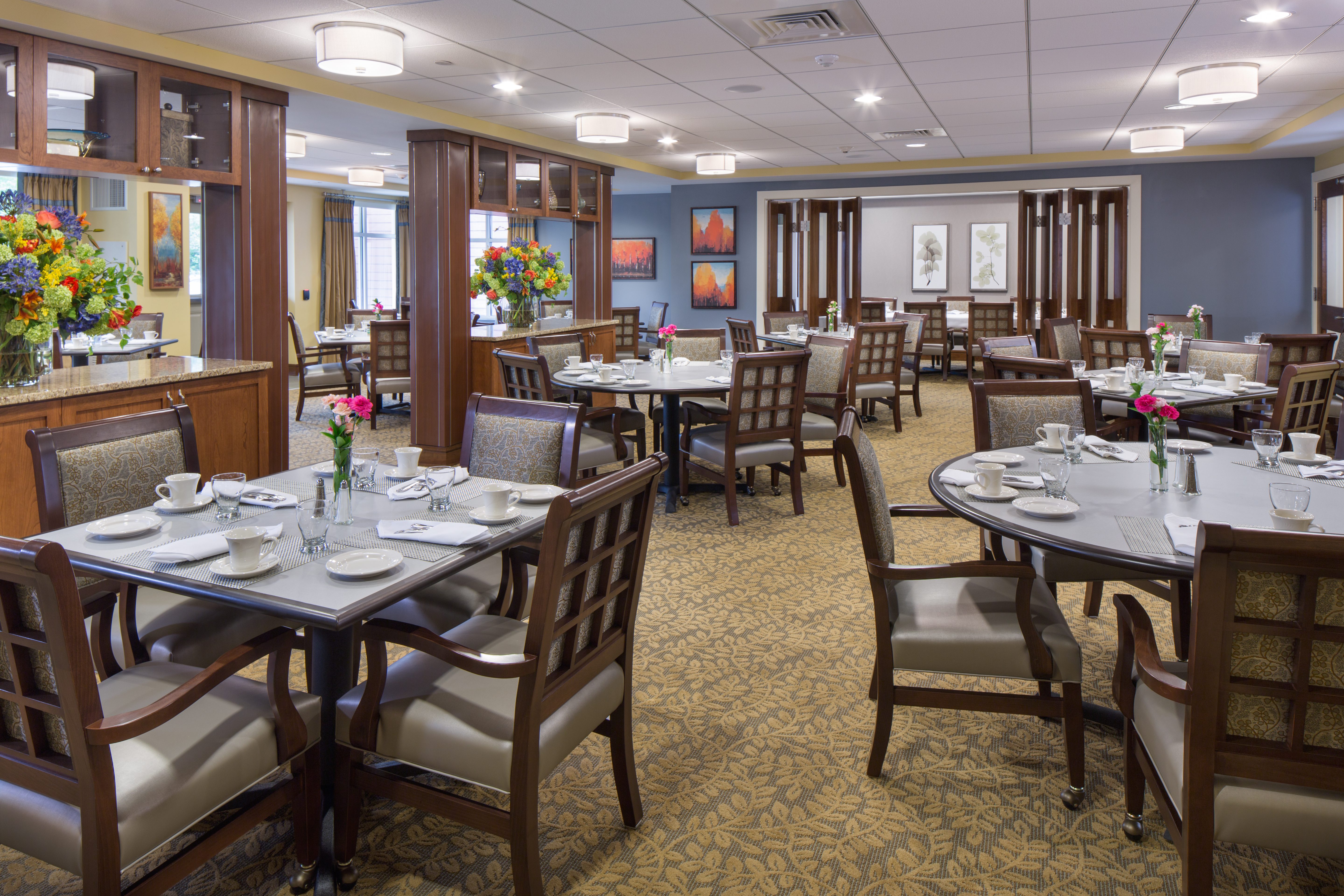 Amenities include a main dining room and private dining, a bistro/pub, library, multi-purpose room, spa and a gym.