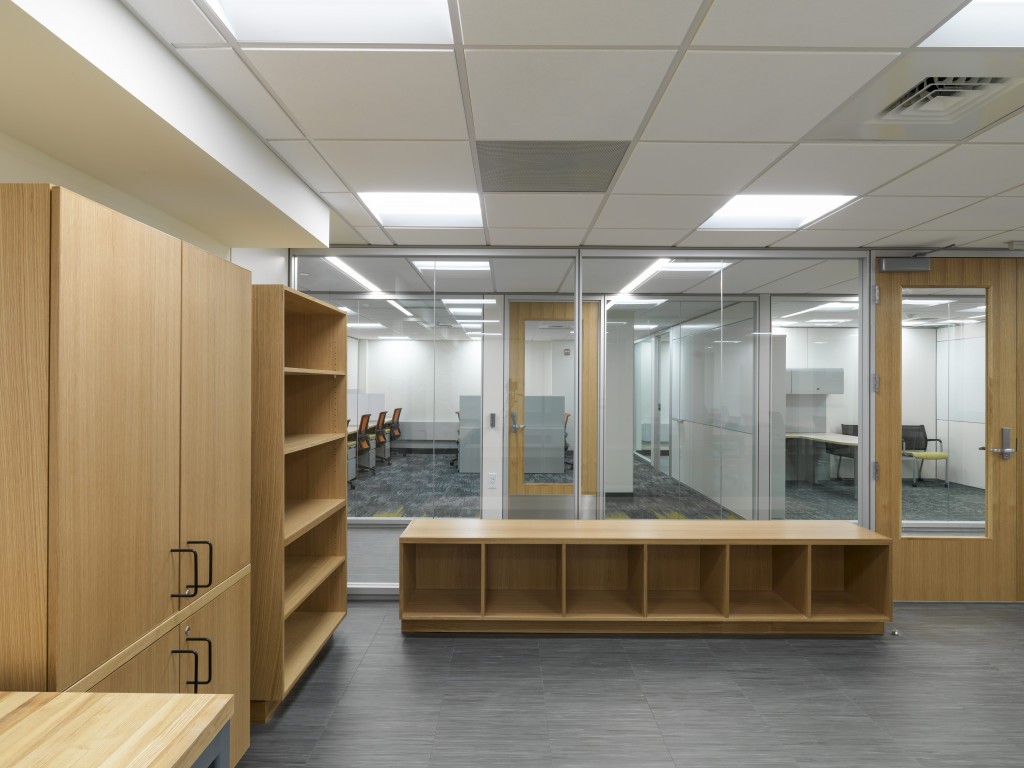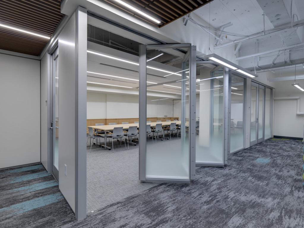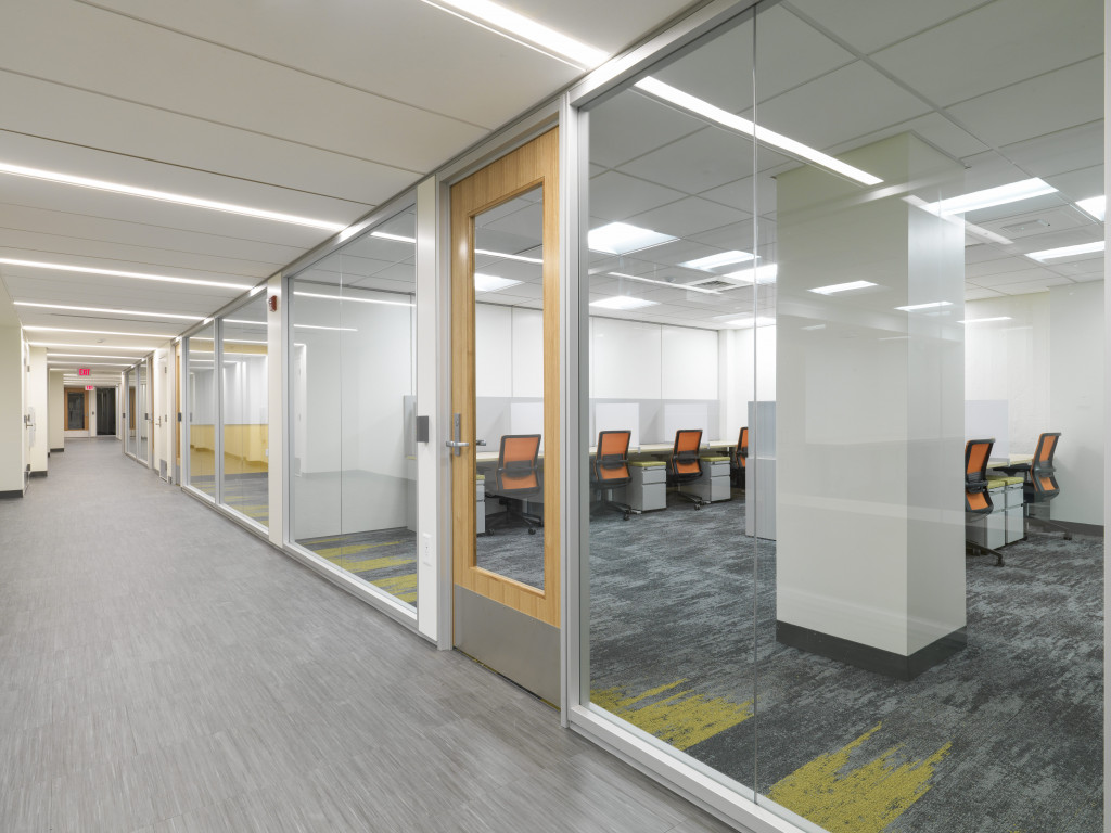 Callahan provided construction management services for this 50,000 SF phased, occupied renovation of math and computer science offices, classrooms and collaborative spaces within the 111 Cummington Mall in Boston, MA. This project includes modular DIRTT wall partitions throughout and MEP/FP upgrades, as well as ADA compliance modifications which include bathroom and stair renovations and overall building improvements.