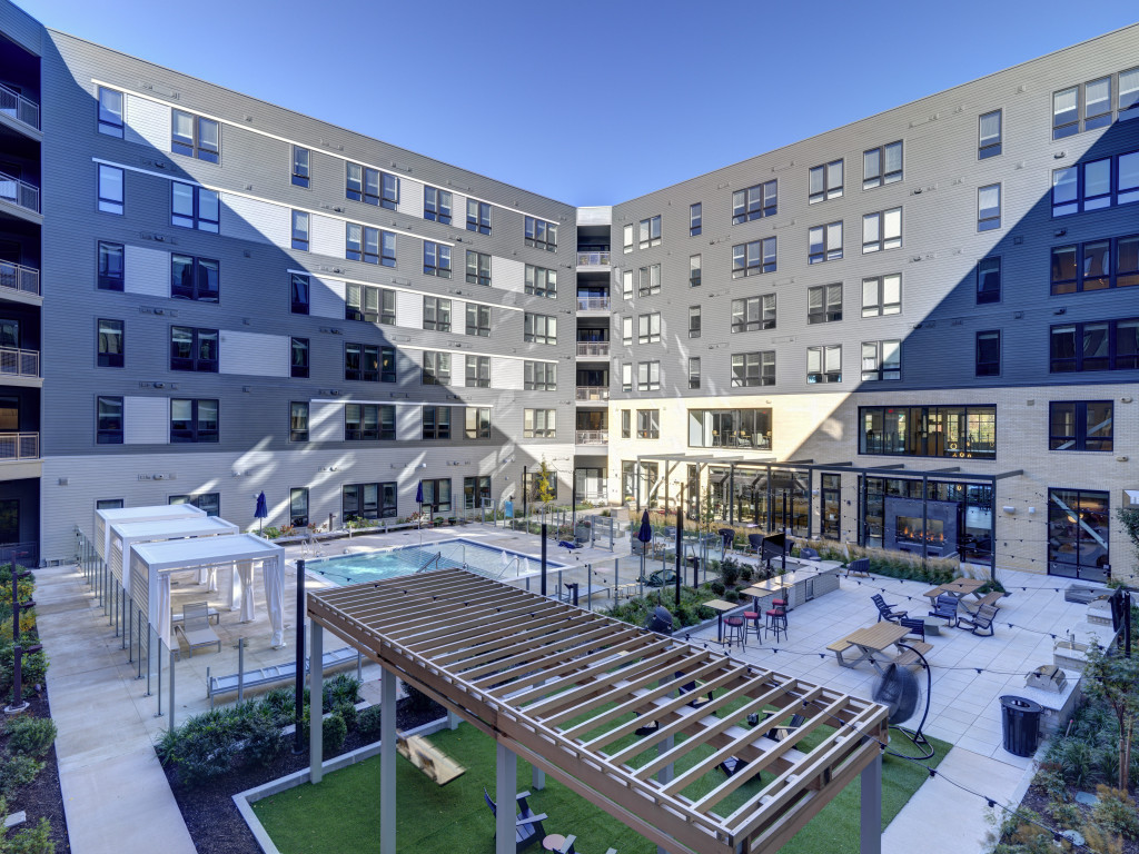 Emblem 120 is a 289-unit, 470,000 SF mixed-use multifamily apartment project that involves the construction of a precast garage wrapped by a 6-story mixed use building. The residential and commercial portions of the building involve the construction of one full level of steel podium and another partial level of steel at level 2, with wood framing above. The project also features a central at-grade amenities courtyard.