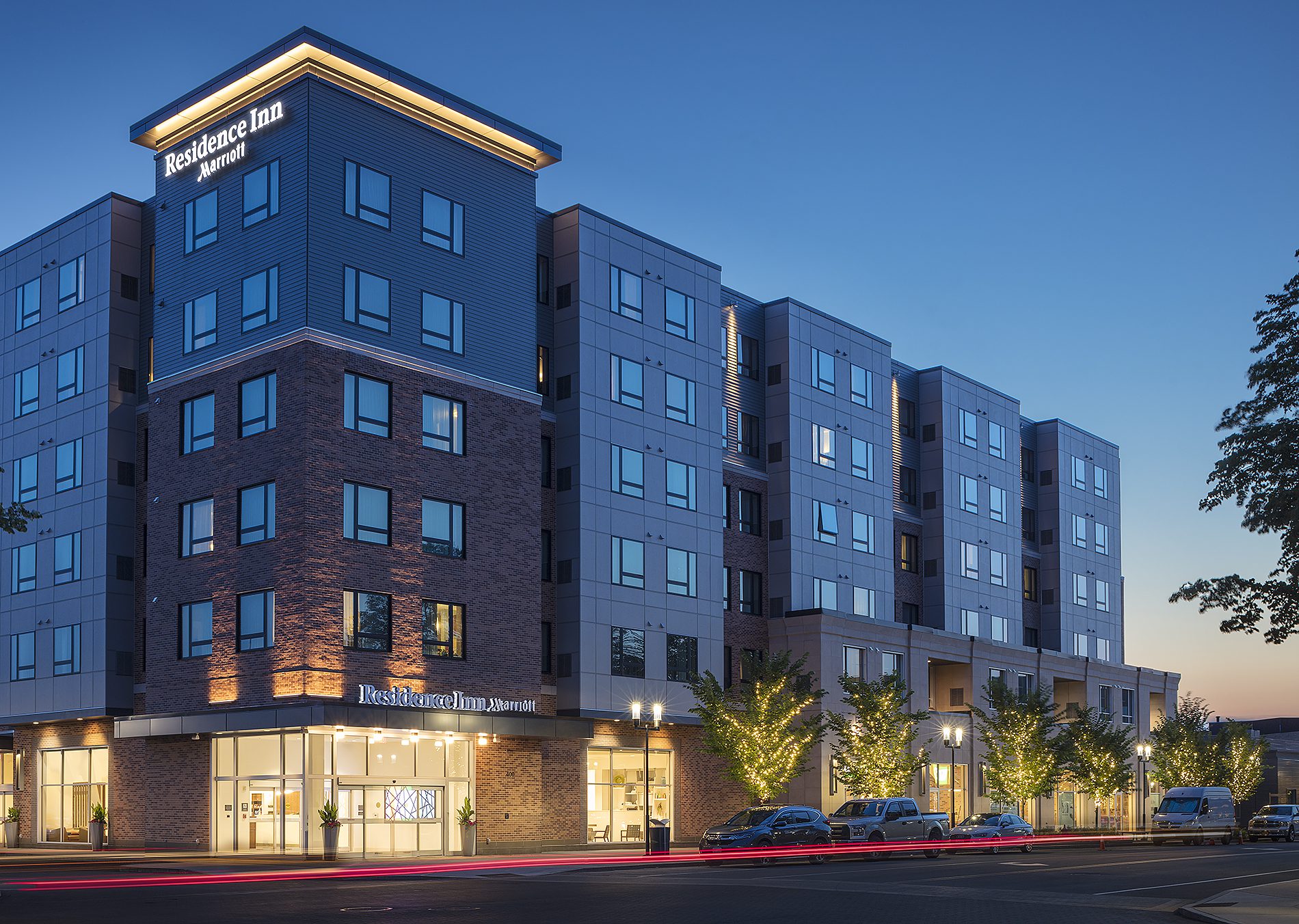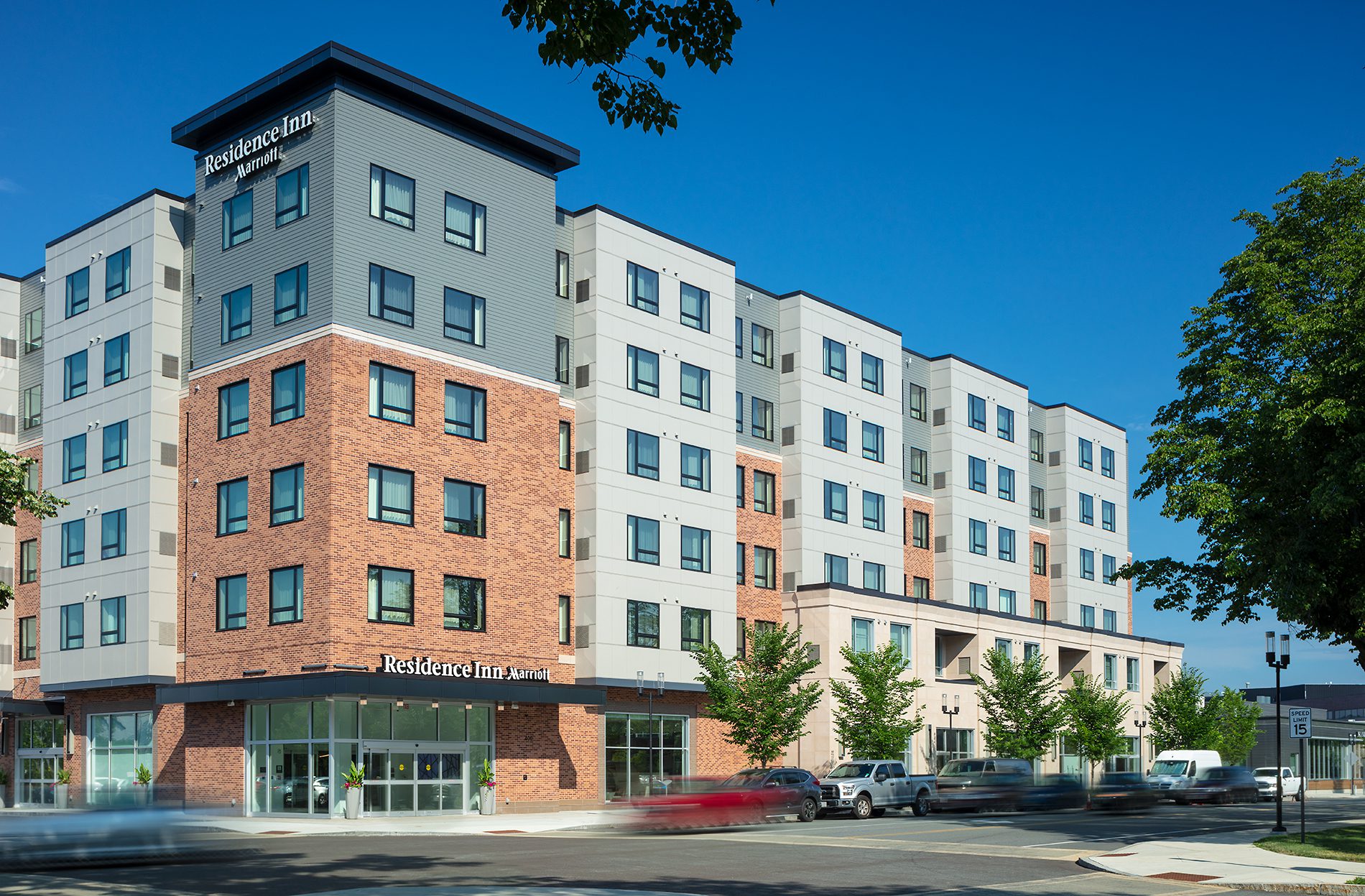 The NEEP Residence Inn in Burlington, MA is a new 129,000 SF hotel with 170 guest rooms. The building is 5 stories of wood-frame over a structural steel podium and features 13,000 SF of amenity space and a 7,000 SF restaurant. The guest rooms contain kitchenettes, full bathroom vanities and built-in dressers meant to cater to extended-stay guests.