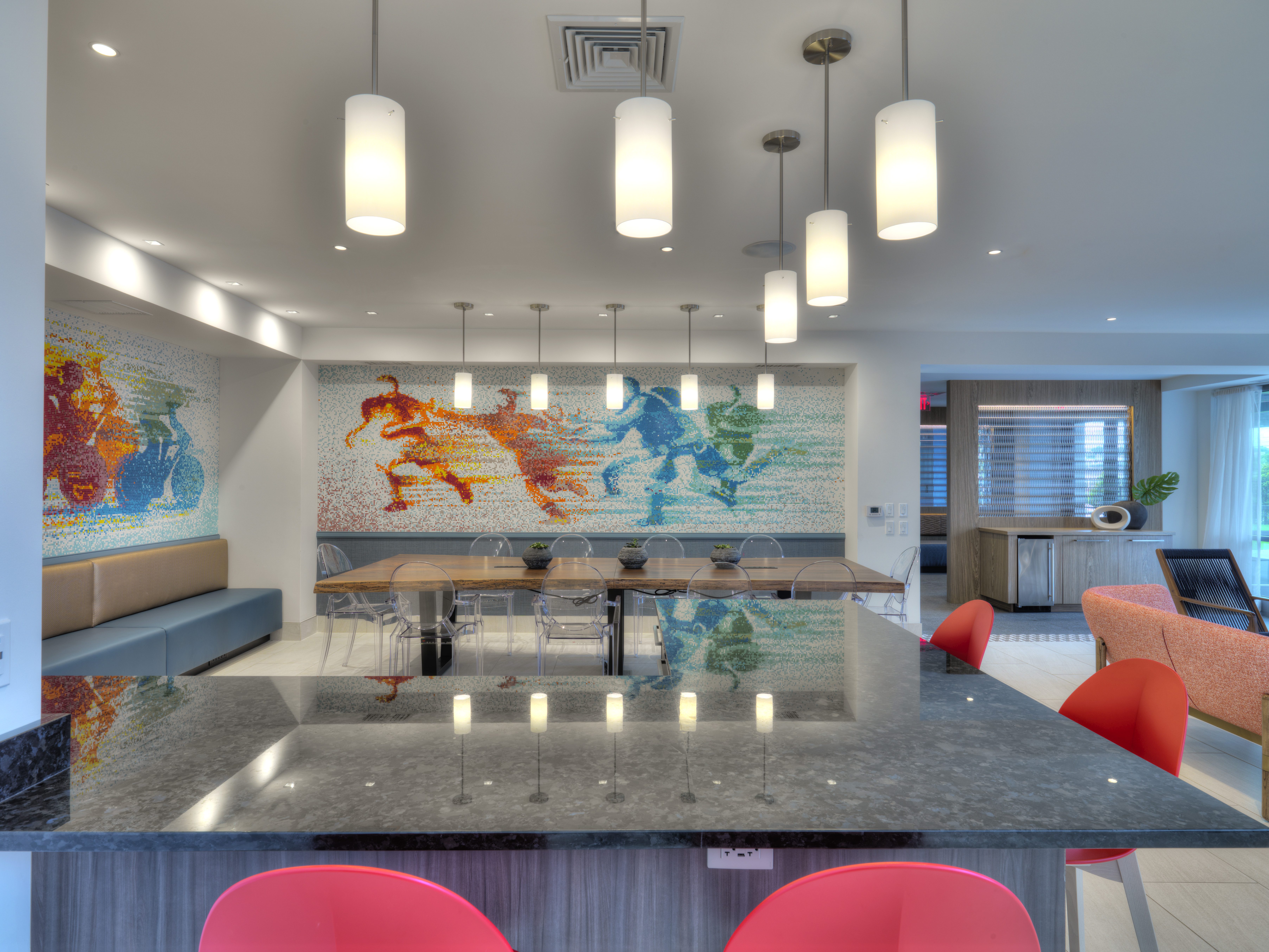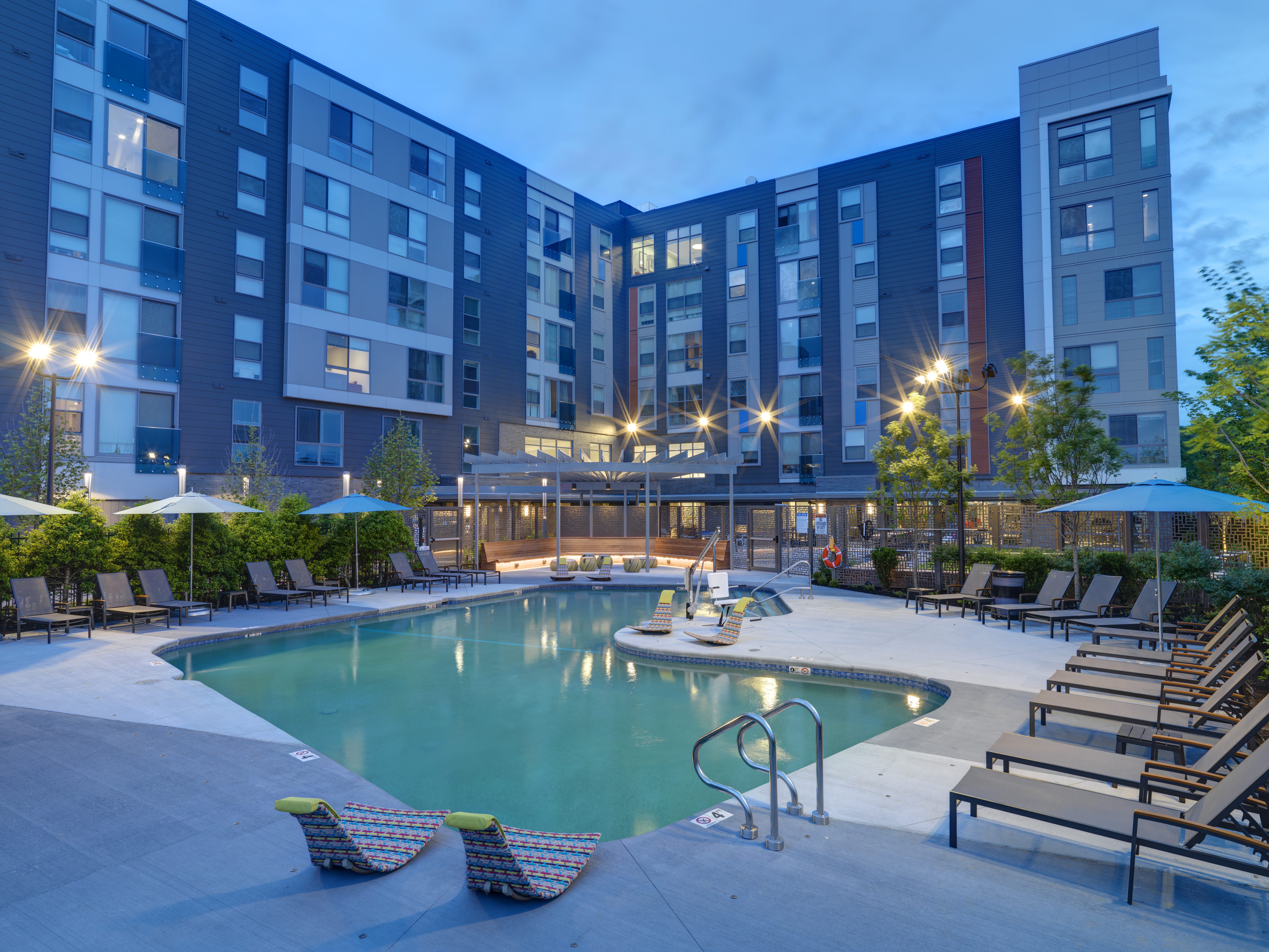 yoga area, lounge, conference room, mail room and an outdoor pool with cabana. The 6th floor includes a lounge with an outdoor deck