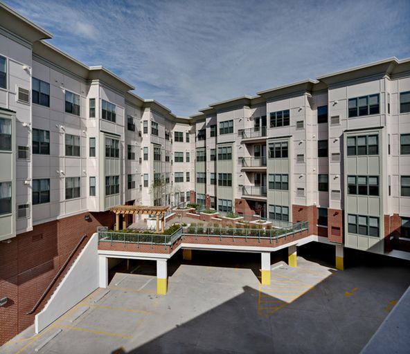 Callahan provided construction management services for this new wood framed apartment complex. The complex has 163 residential units and a 6,000 SF day care facility over a 56,000 SF single story parking structure. Amenities include an elevated courtyard, a swimming pool and a fitness center. The project was categorized as a Brownfield Redevelopment Site, which required the removal of approximately 17,000 cubic yards of coal contaminated soils. Due to the finding of poor subsurface conditions additional materials were exported from the site of roughly 8000 cubic yards. This was a challenging site as we working right next to railroad tracks and had to comply with all the regulations that come with that.