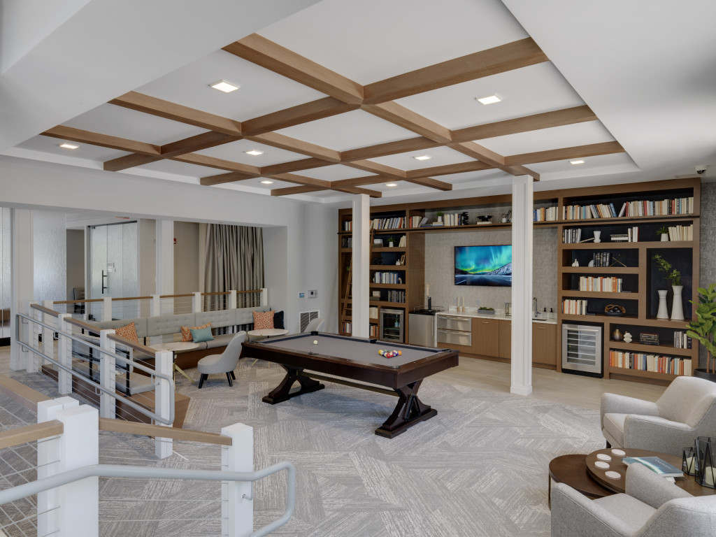 framing above 1 level of post-tensioned podium parking. The buildings feature 220 units and a mix of indoor and outdoor amenities.