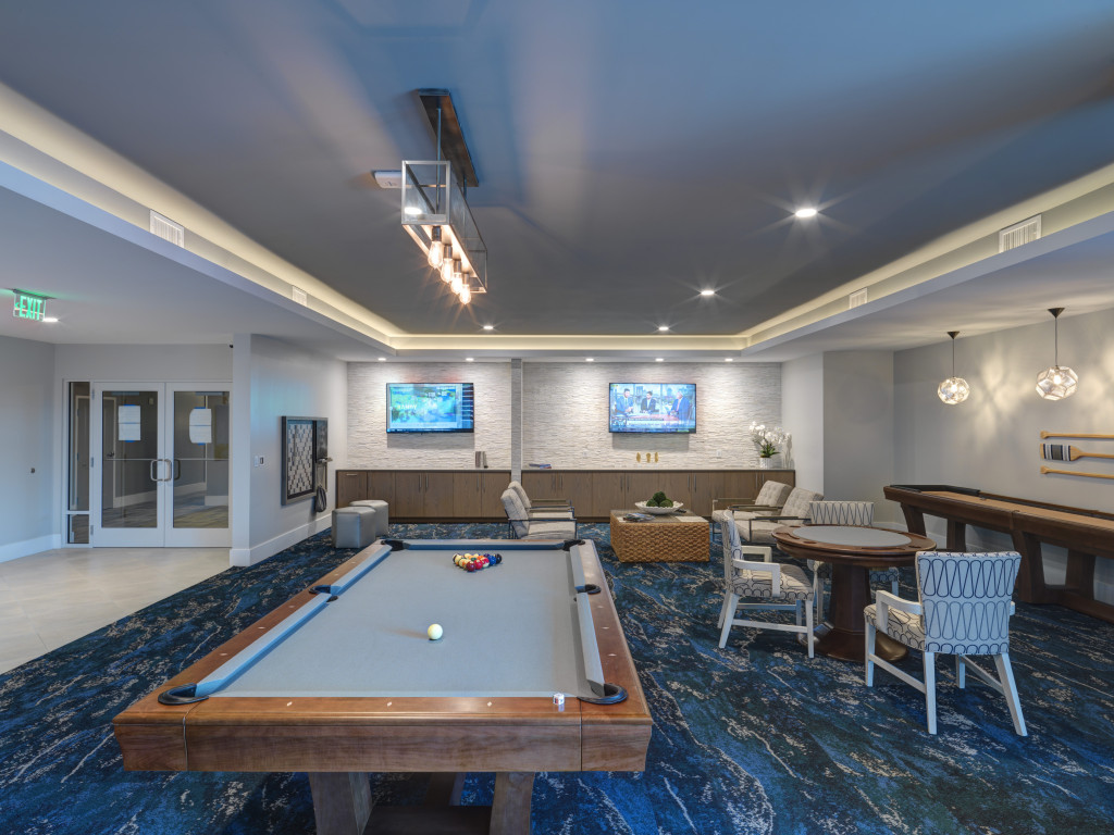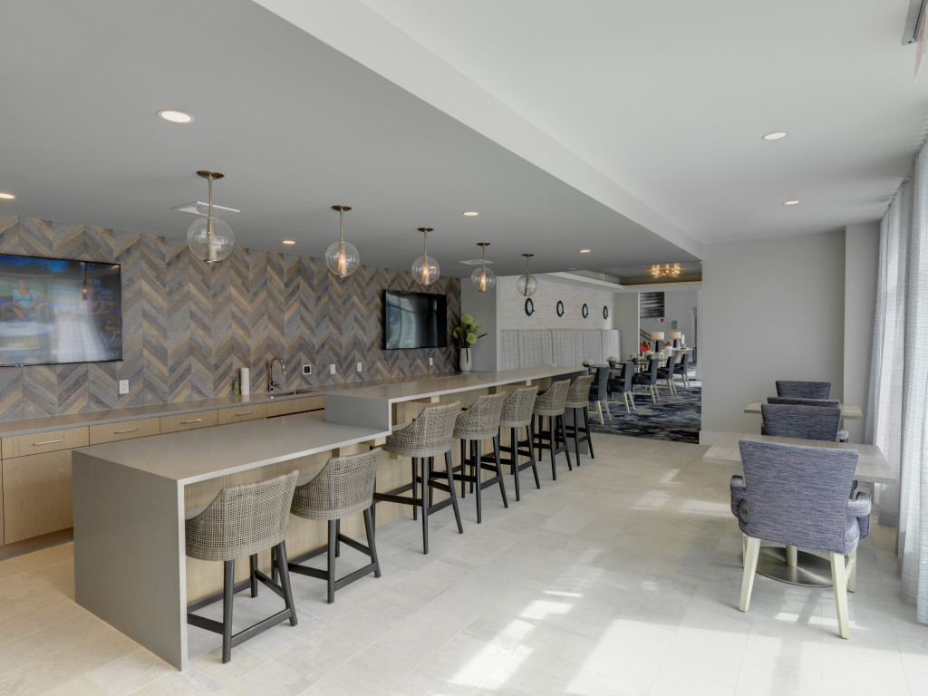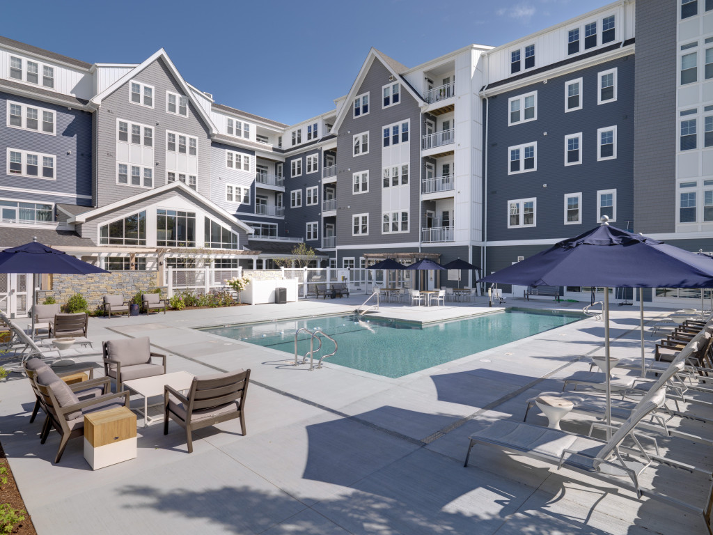 Callahan provided construction management services for The Everleigh, a 55+ active adult community on Cape Cod that consists of a 4-story wood frame over steel podium building with 225 units, a large indoor and outdoor amenities area and a 142-car underground parking garage. The amenities include a swimming pool, pickle ball and bocce court, a dog park, horseshoe pit, yoga/fitness center, pub lounge, a theatre, chef’s kitchen, business center and a library. Callahan worked with the Town of Barnstable to develop a plan that allowed the owner to occupy the building in phases.